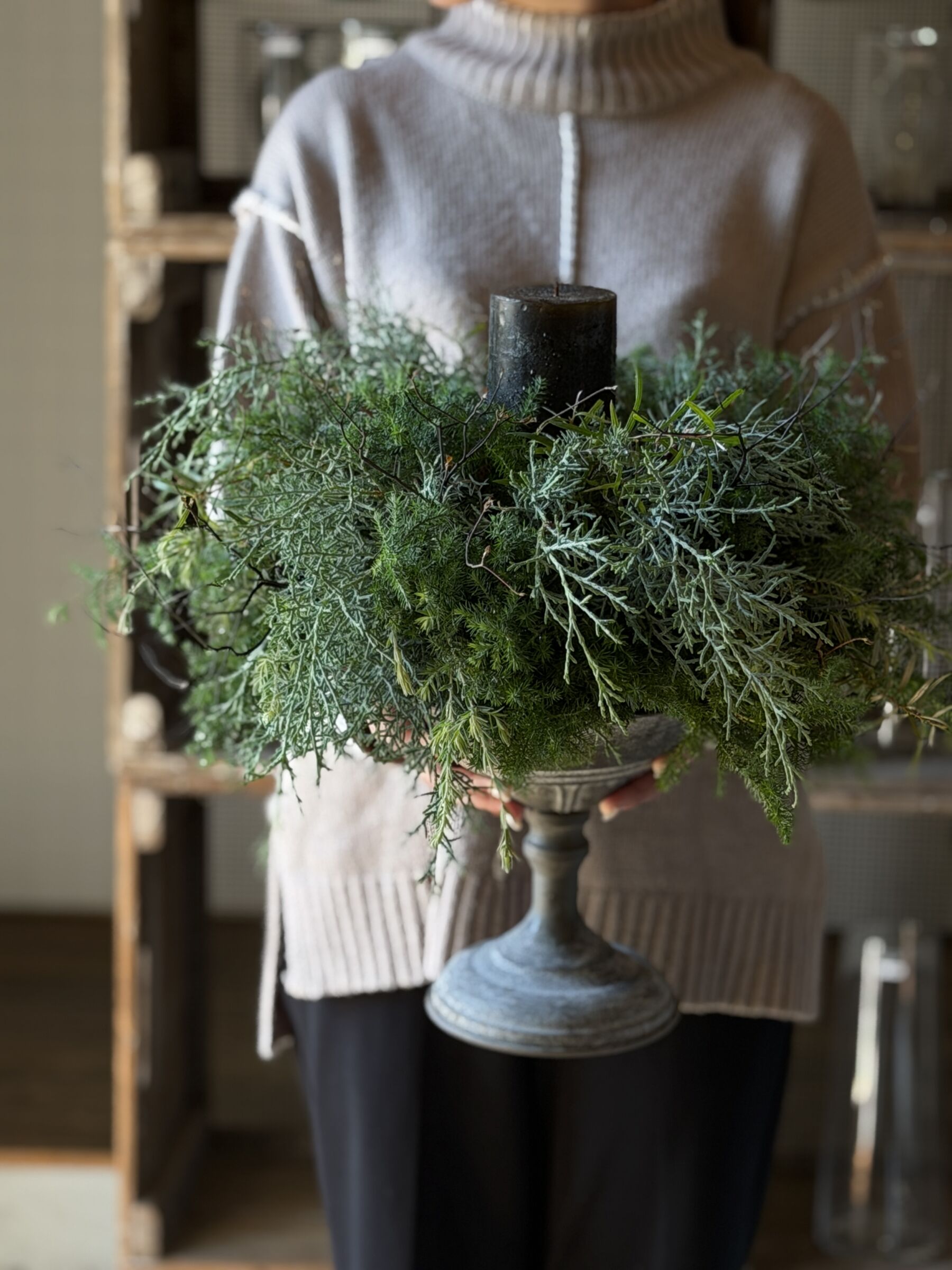 | クリスマスデコレーション | アドベントキャンドルアレンジ, アンティークベースのキャンドルアレンジ, ナチュラルグリーンのクリスマスツリー, ナチュラルグリーンのクリスマスリース Lサイズ |