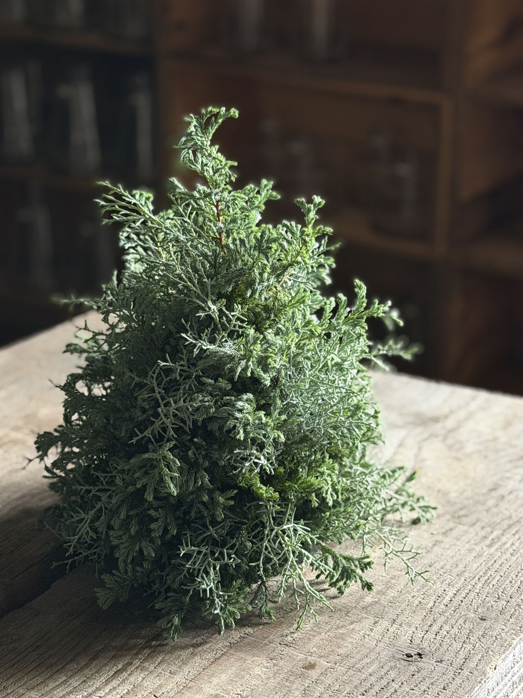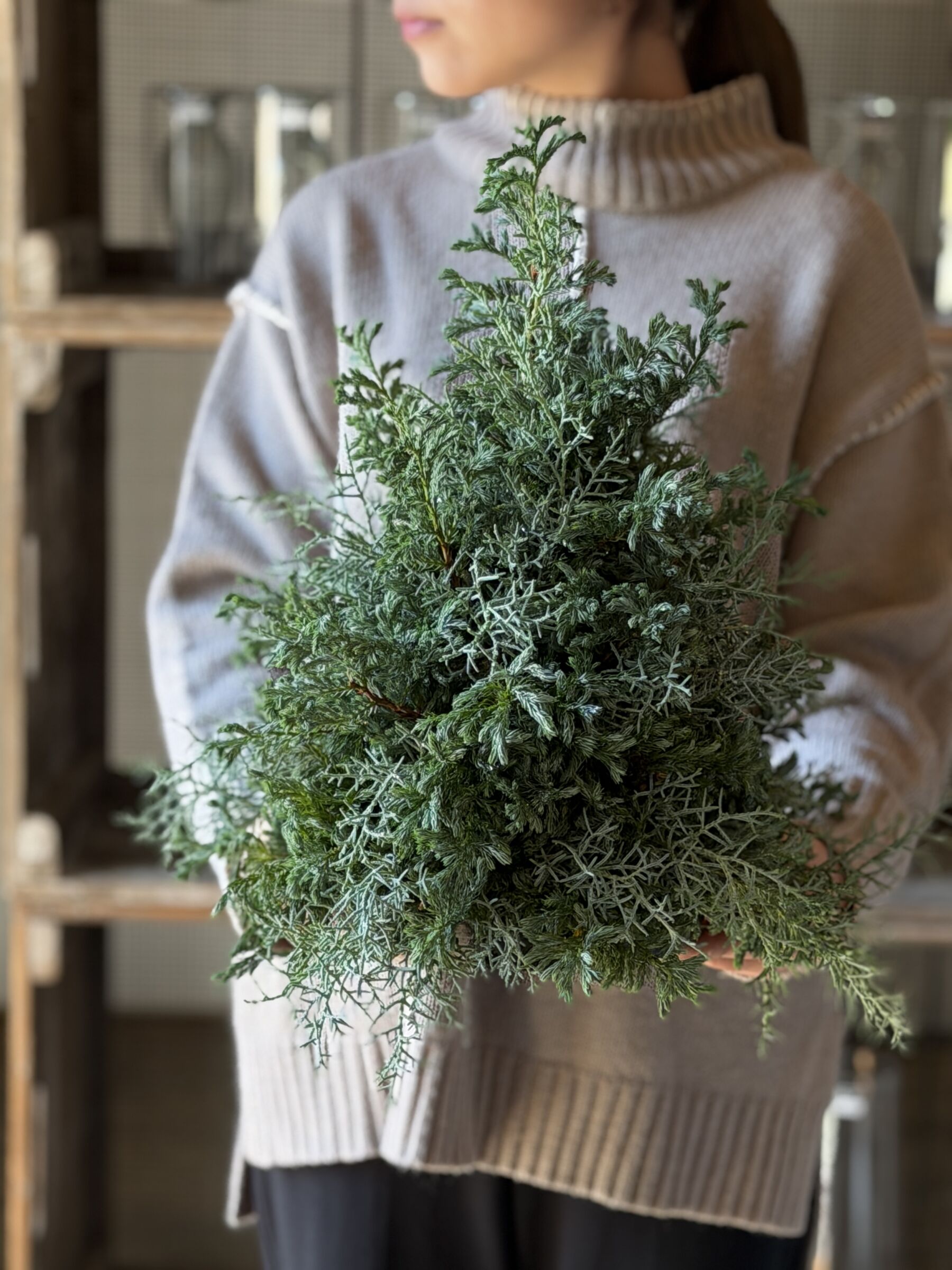 シルバーグリーンの針葉樹だけで作ったごくシンプルな